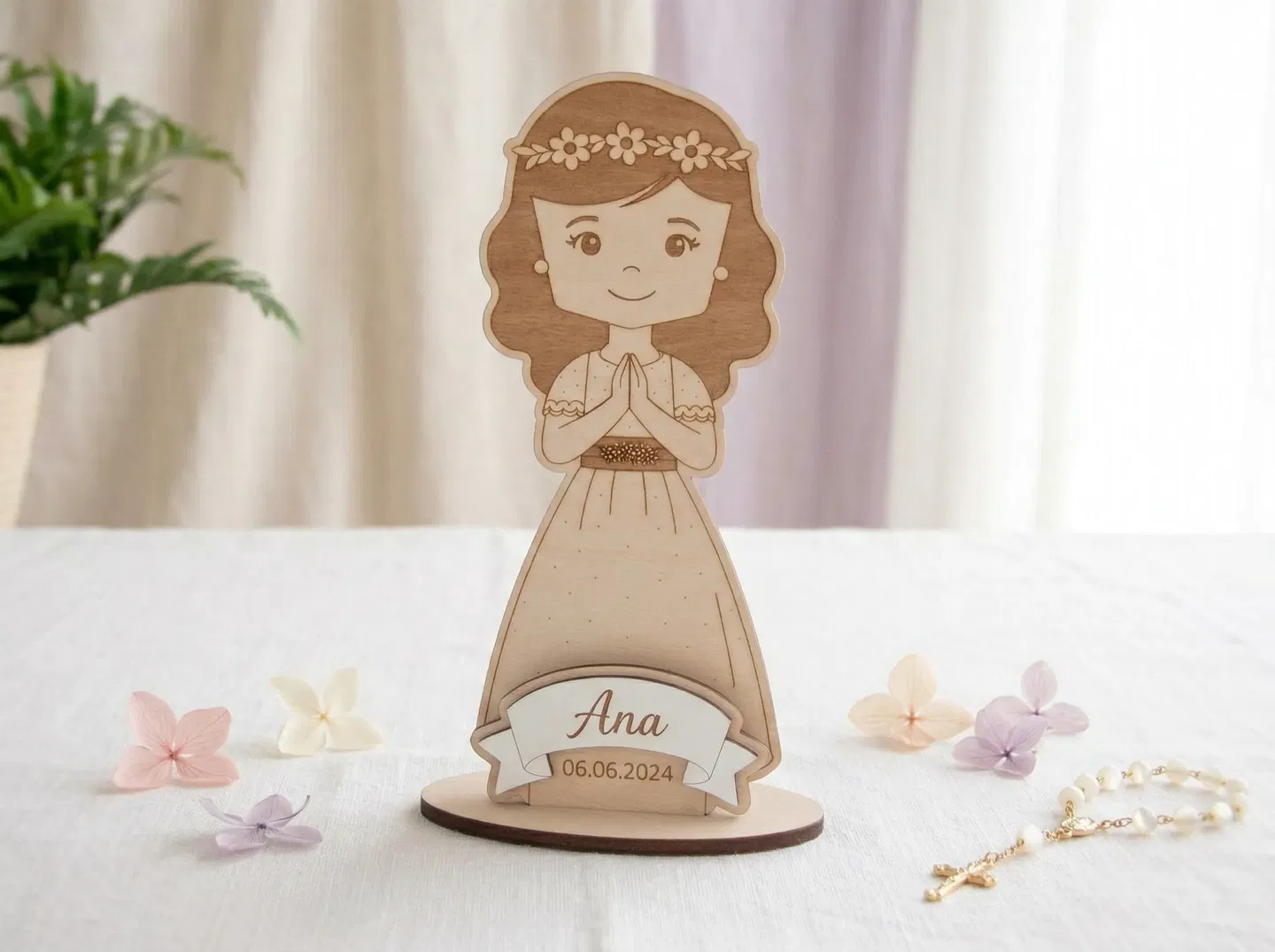Una encantadora figura protagonista, diseñada con delicadeza para capturar la esencia de este día tan especial. Perfecta para añadir un toque de ternura y elegancia a la celebración de la comunión.