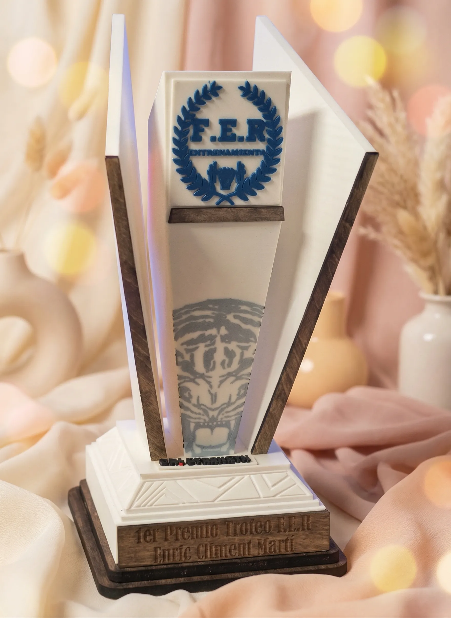 Trofeo FER CUP 2025 con el nombre grabado en su base