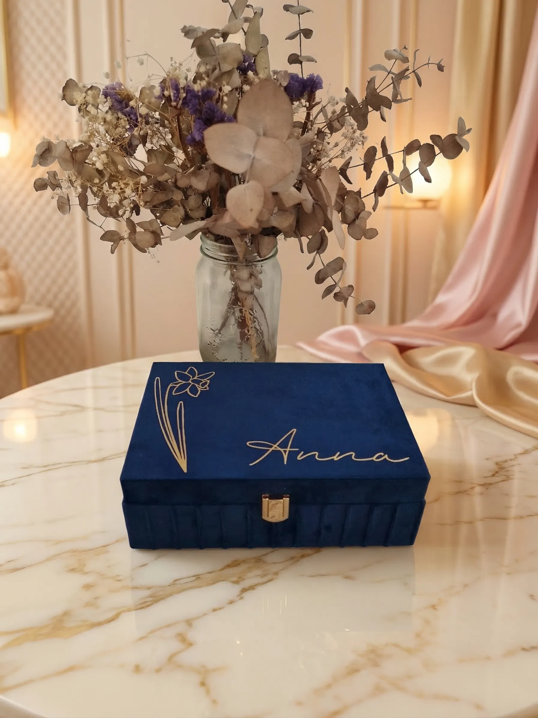 Joyero personalizado con vinilo textil ideal para organizar y proteger tus joyas con estilo. Un diseño elegante y funcional que añade un toque de sofisticación a tu espacio de almacenamiento.