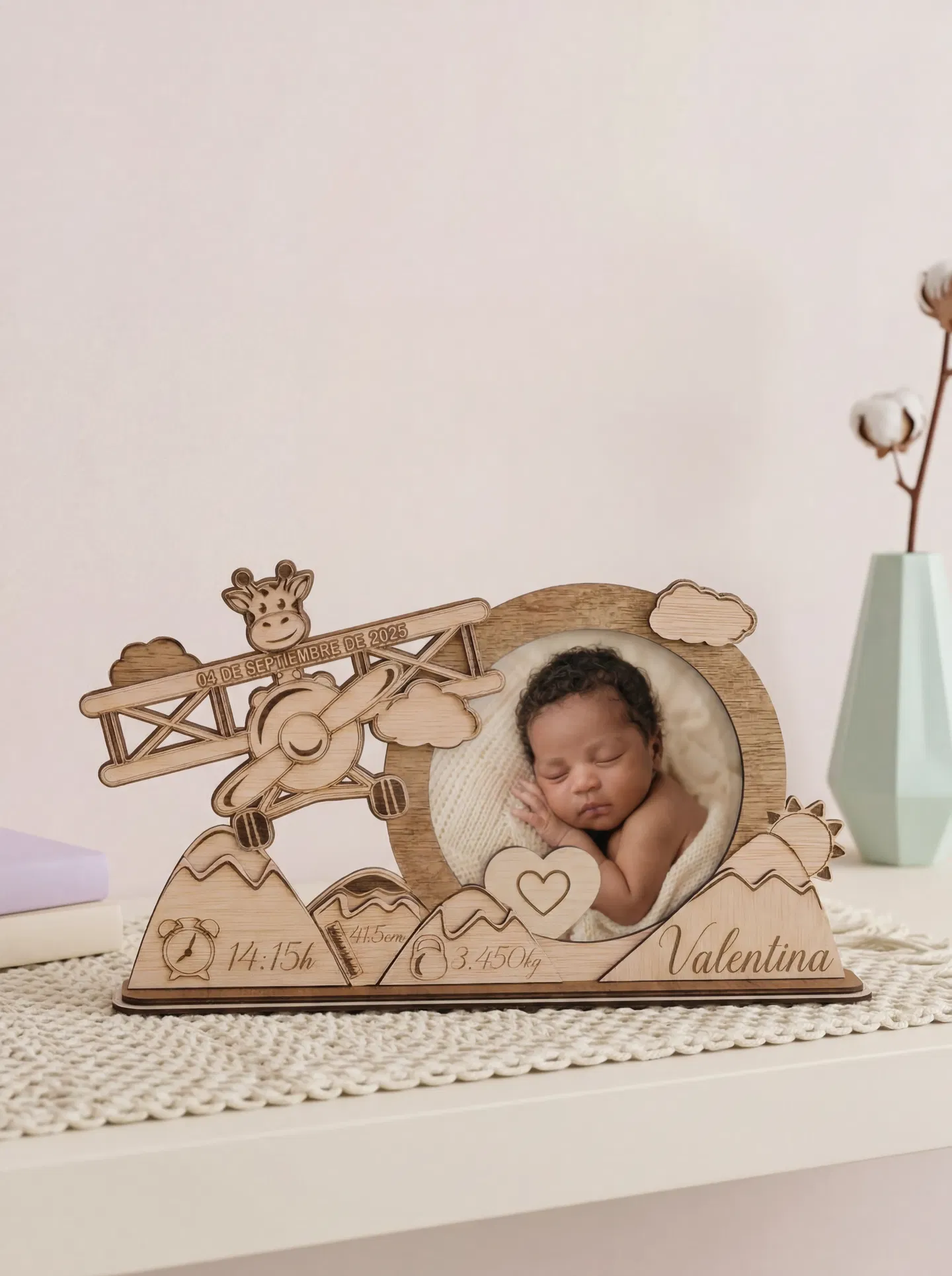 Una avioneta decorativa para nacimientos, simbolizando viajes y aventuras desde el primer día. Un detalle encantador y simbólico que añade un toque de exploración a la celebración del nacimiento.
