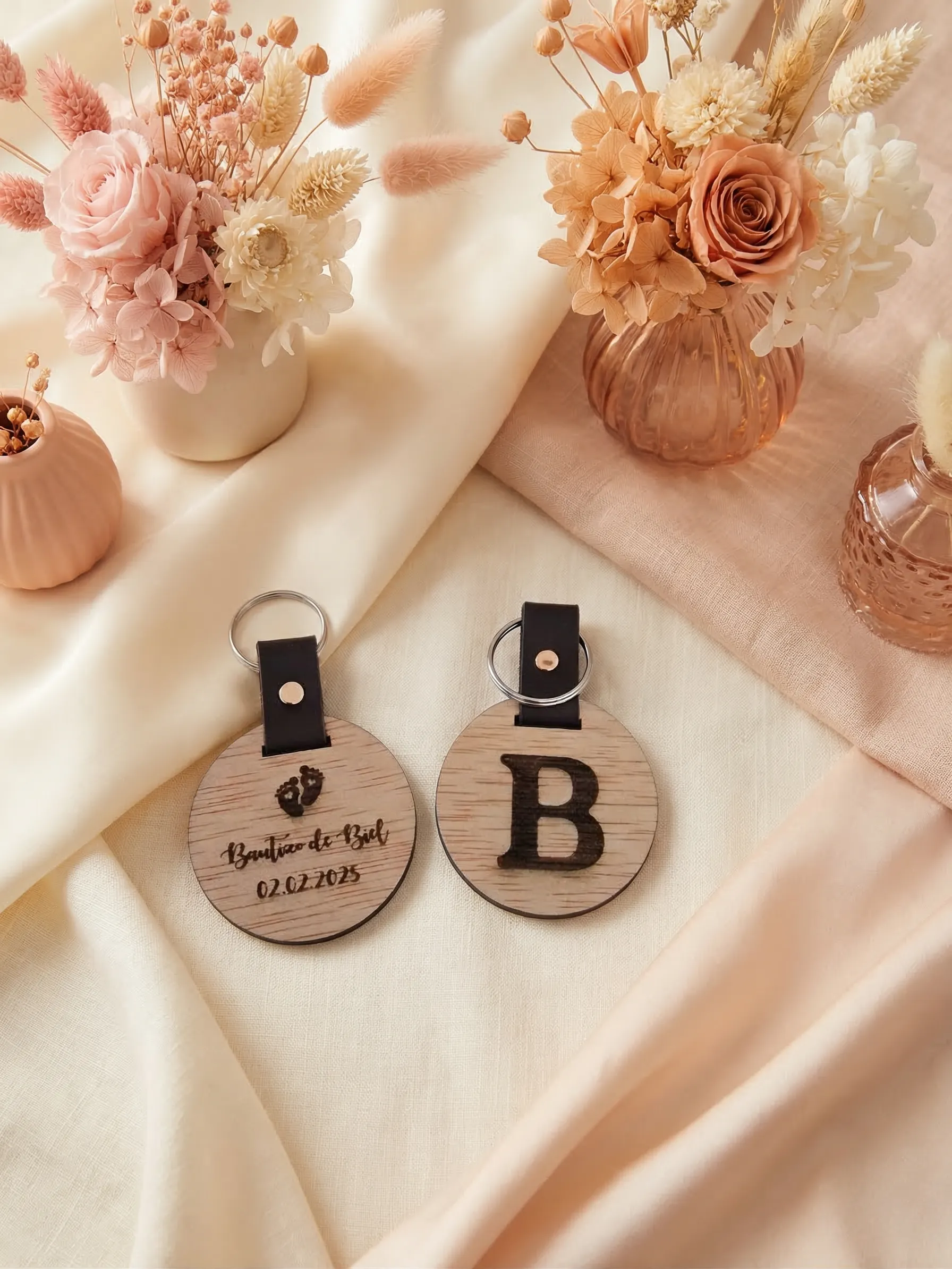 Un llavero elegante y refinado, diseñado como detalle perfecto para invitados en celebraciones de bautizos y nacimientos. Combina funcionalidad con un toque de sofisticación, ideal para obsequiar en momentos especiales.