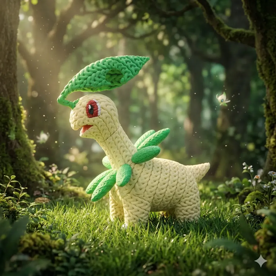 Dinosaurio Hoja (Crochet): criatura herbácea tejida con hojas suaves y encanto natural. Perfecto para jardines imaginarios y colecciones verdes.